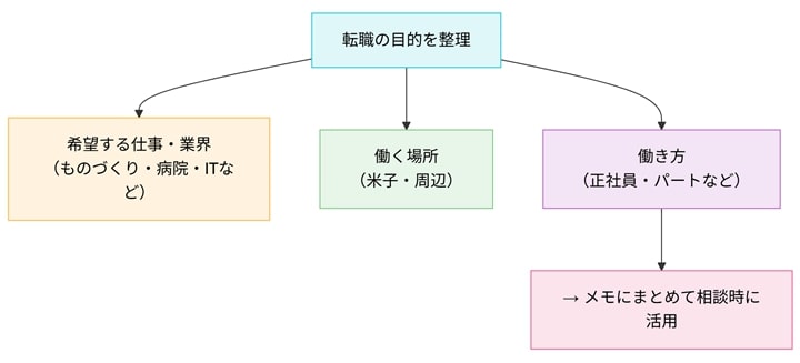 この3つをメモにしてまとめとくと、どこの米子での転職サポート窓口でも、相談がスムーズに進むだわ。