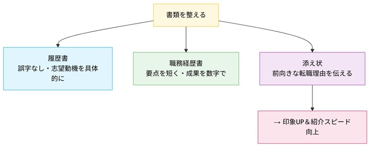 転職サポートの面談では、履歴書や職務経歴書見ながら細かいアドバイスをもらうことが多いけんね。書類がちゃんと揃っとるだけで印象が良くなるし、会社の紹介も早くなるだで。