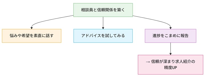 相談員とのやり取りを大事にすると、もっと自分に合った求人を紹介してもらえる可能性がぎょうさん上がるだわ。