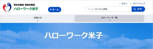 - 所在地:鳥取県米子市末広町311 イオン米子駅前店4階(鳥取県立米子ハローワーク内)